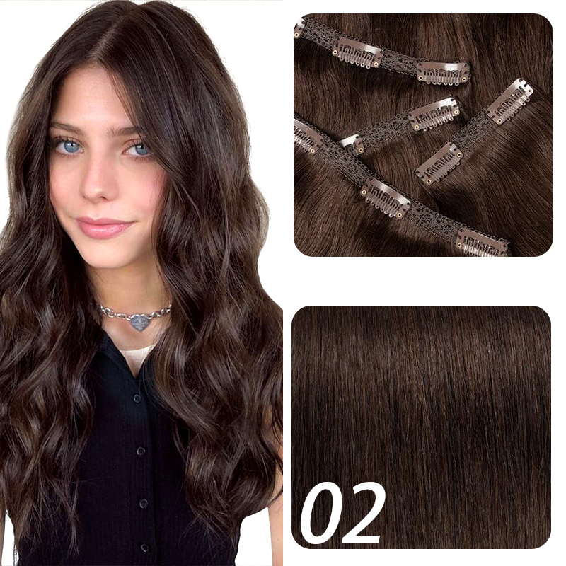 * 100% Real Human Hair Clip In, Natural Human Hair Extensions Clip